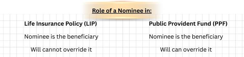 In simple words, while a nominee in a PPF is typically considered the beneficiary after the account holder passes away, this condition will be nullified if the account holder has designated another person as the beneficiary of the asset in their Will.